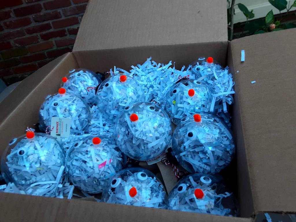 Last year, I got 11 giant plastic ornaments, which had a little black thing to go around the wire reminded me of an updated version of Frosty the Snowman’s hats, which was a beanie hat.